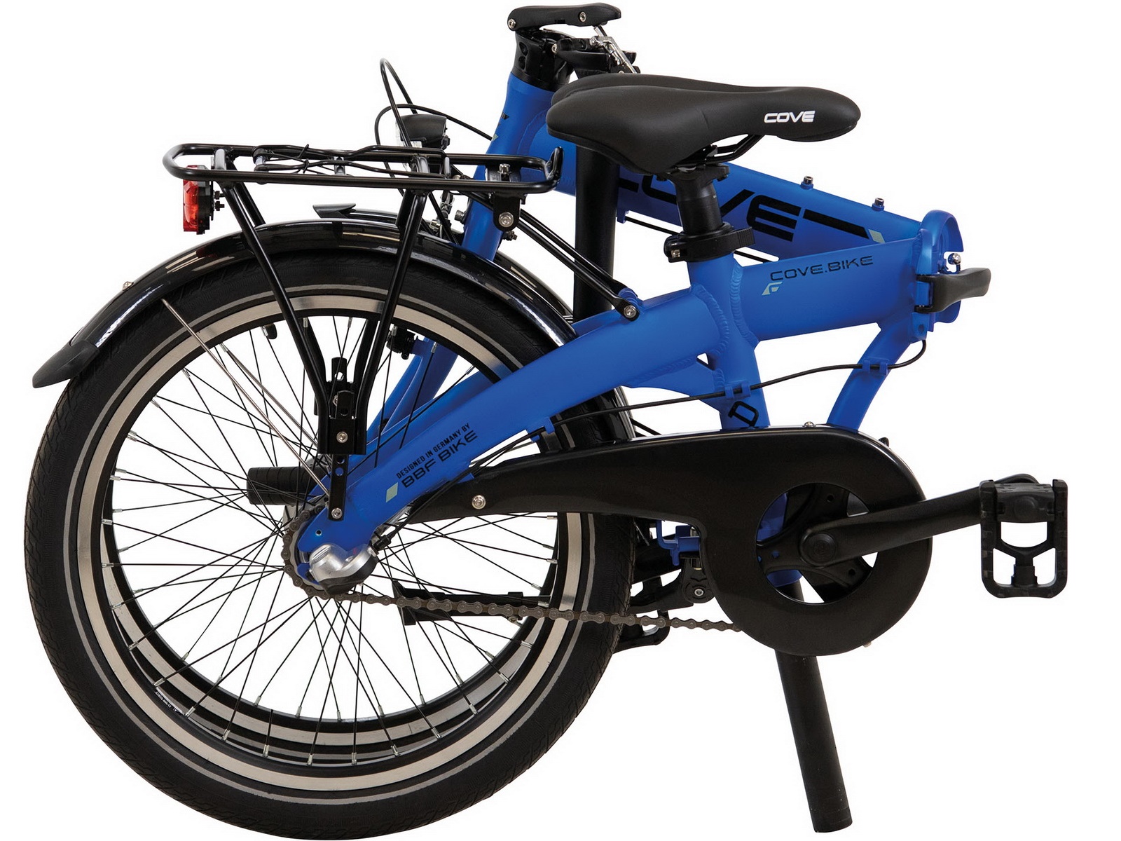 COVE 05 3spd je hliníkový nemecký skladací bicykel s predným osvetlením na dynamo a zadným na batérie.